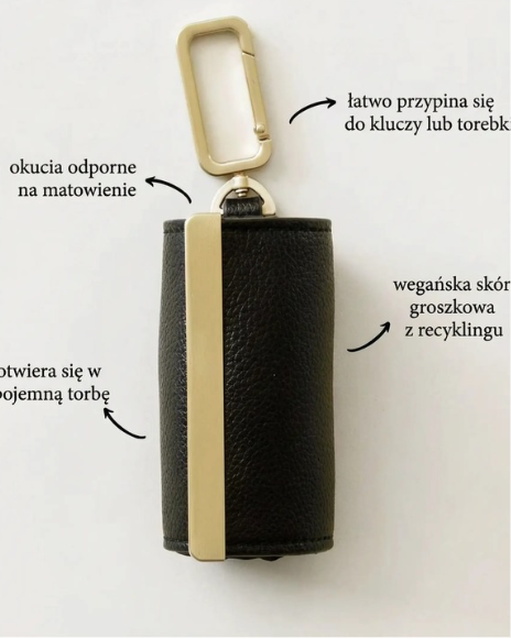 Ten elegancki brelok został wykonany z wysokiej jakości skórzanej klamry oraz okuć z polerowanego metalu, co nadaje mu luksusowy wygląd z najwyższej półki. Nosi się jak stylowy dodatek, ale działa jak niezbędny element codziennego wyposażenia.